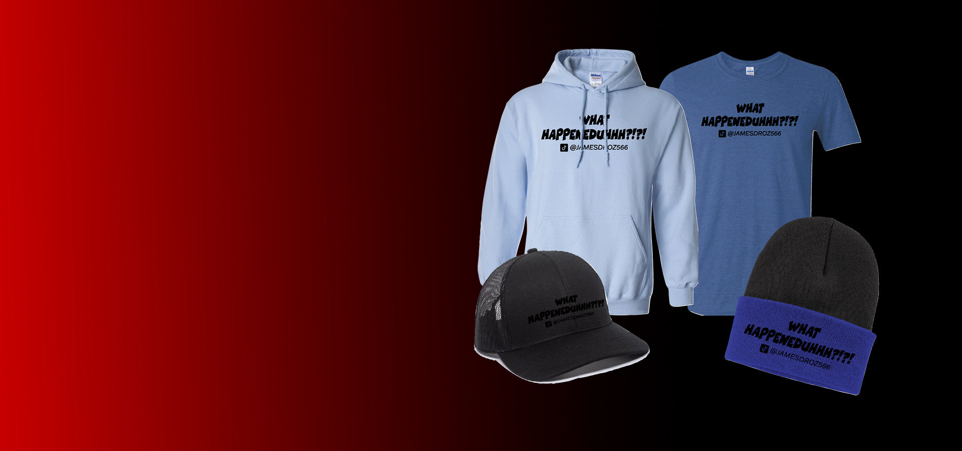 Welcome to the Official James Droz Merch Store - your perfect destination to shop your favorite catchphrase "What Happenedduhhh?!?!?!" merchandise.
